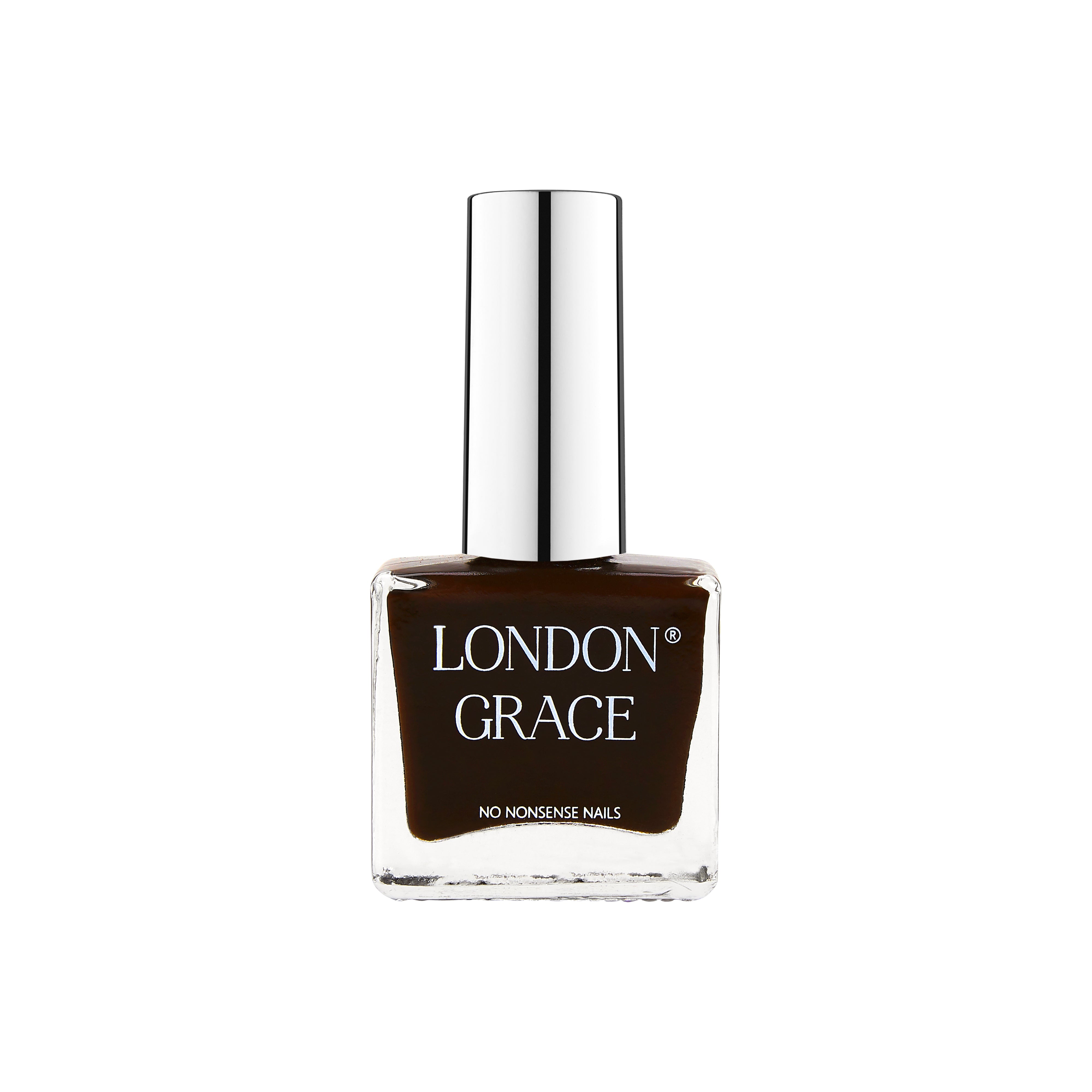 • London Grace Teddy Nail Polish – dark chocolate brown for glossy, long-lasting nails. Vegan and eco-friendly.