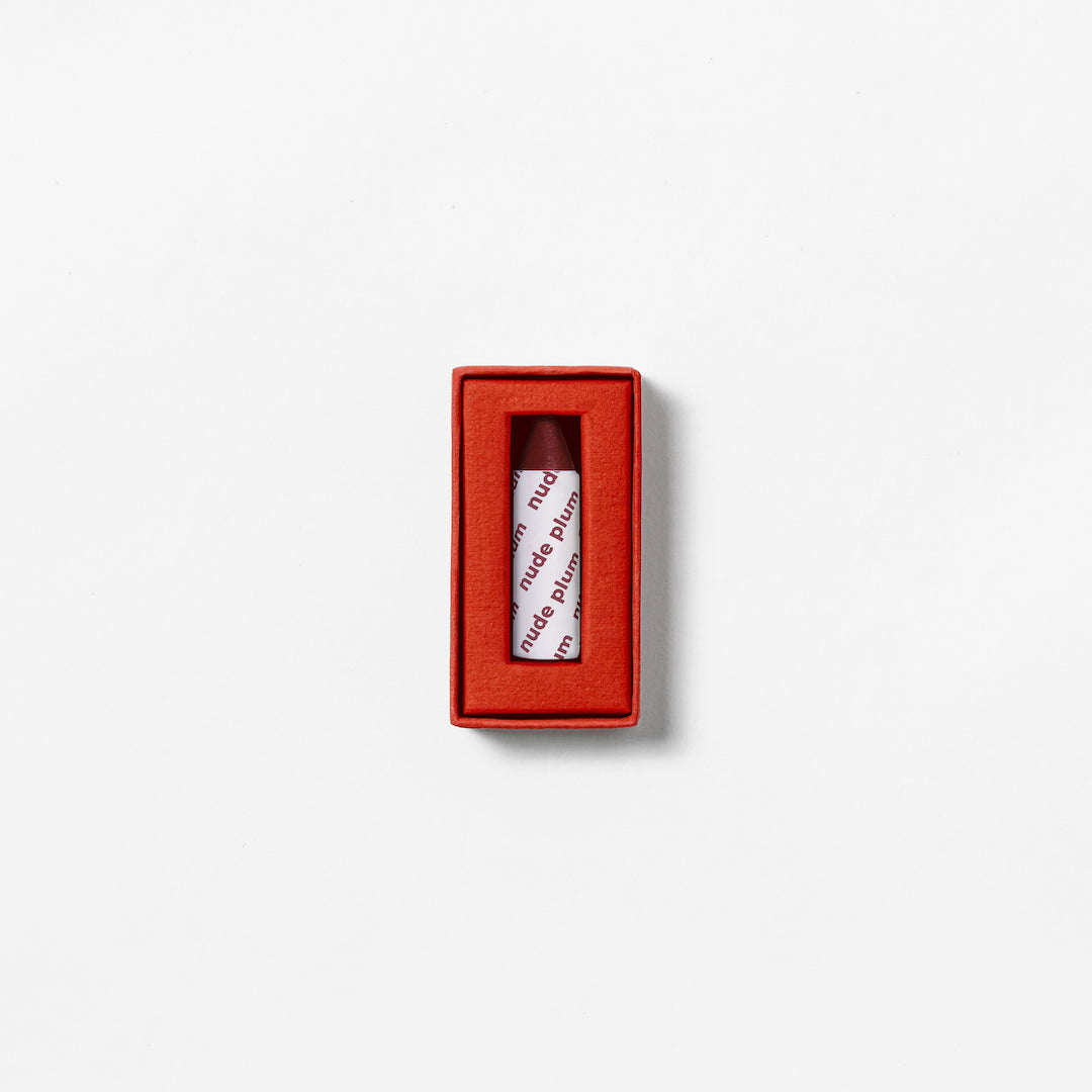 • AXIOLOGY Vegan Multi-Use Balmie Crayon Nude Plum, plastic-free matte makeup for eyes, lips, and cheeks.