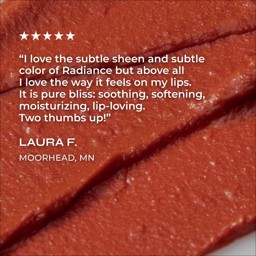 • AXIOLOGY Tinted Dew Multi-Stick in Radiance, sheer coral shade with warm glow for lips, cheeks, and eyes, vegan plastic-free makeup