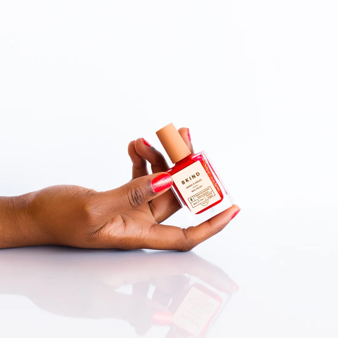 BKIND vegan, 77% plant-based, 21-FREE, professional-grade nail polishes apply easily, dry quickly, and give you a long-lasting, luminous finish.