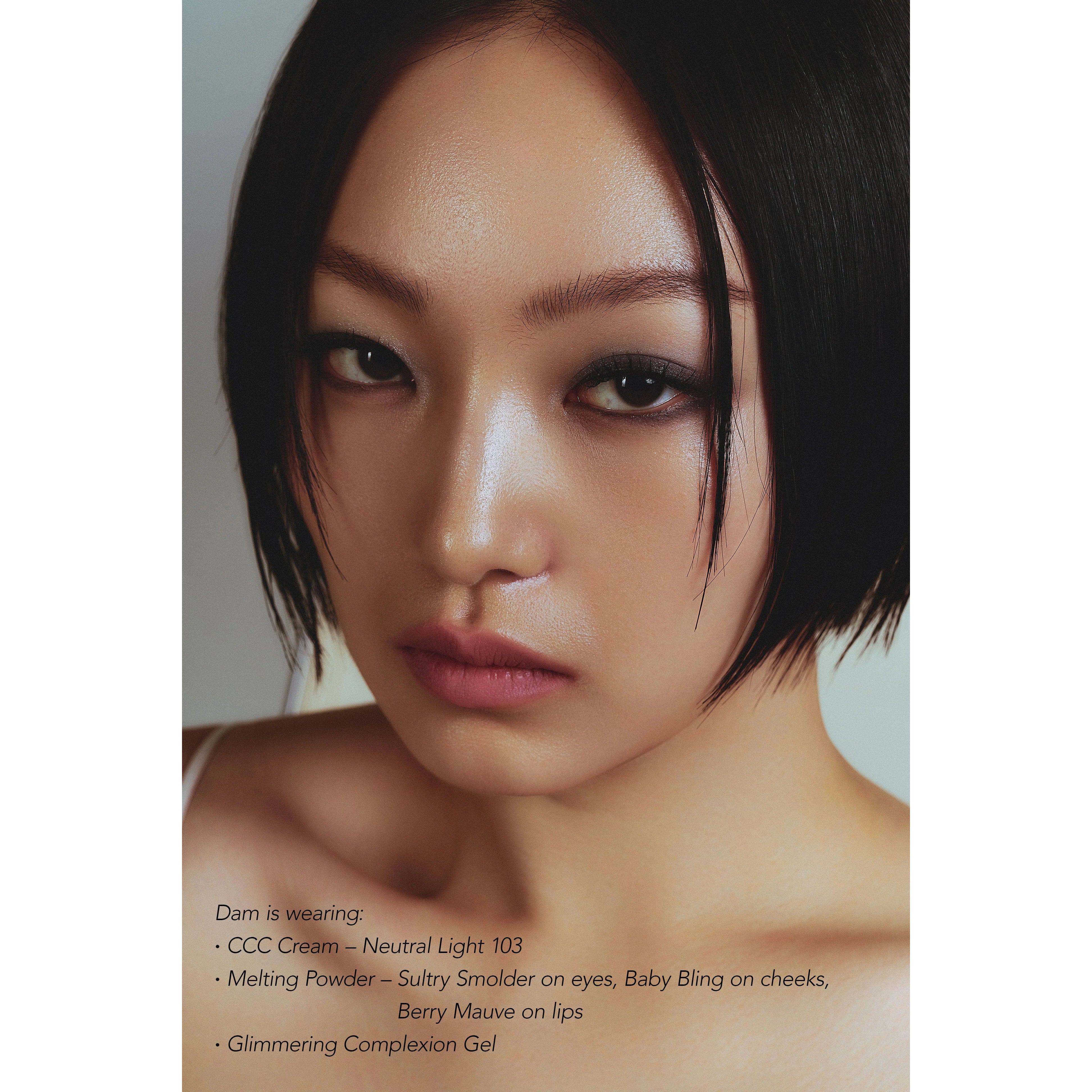 How to Use: For a dewy pop of color, apply Melting Powder on the eyes and/or cheeks then follow up with a light dab of Glimmering Complexion Gel.