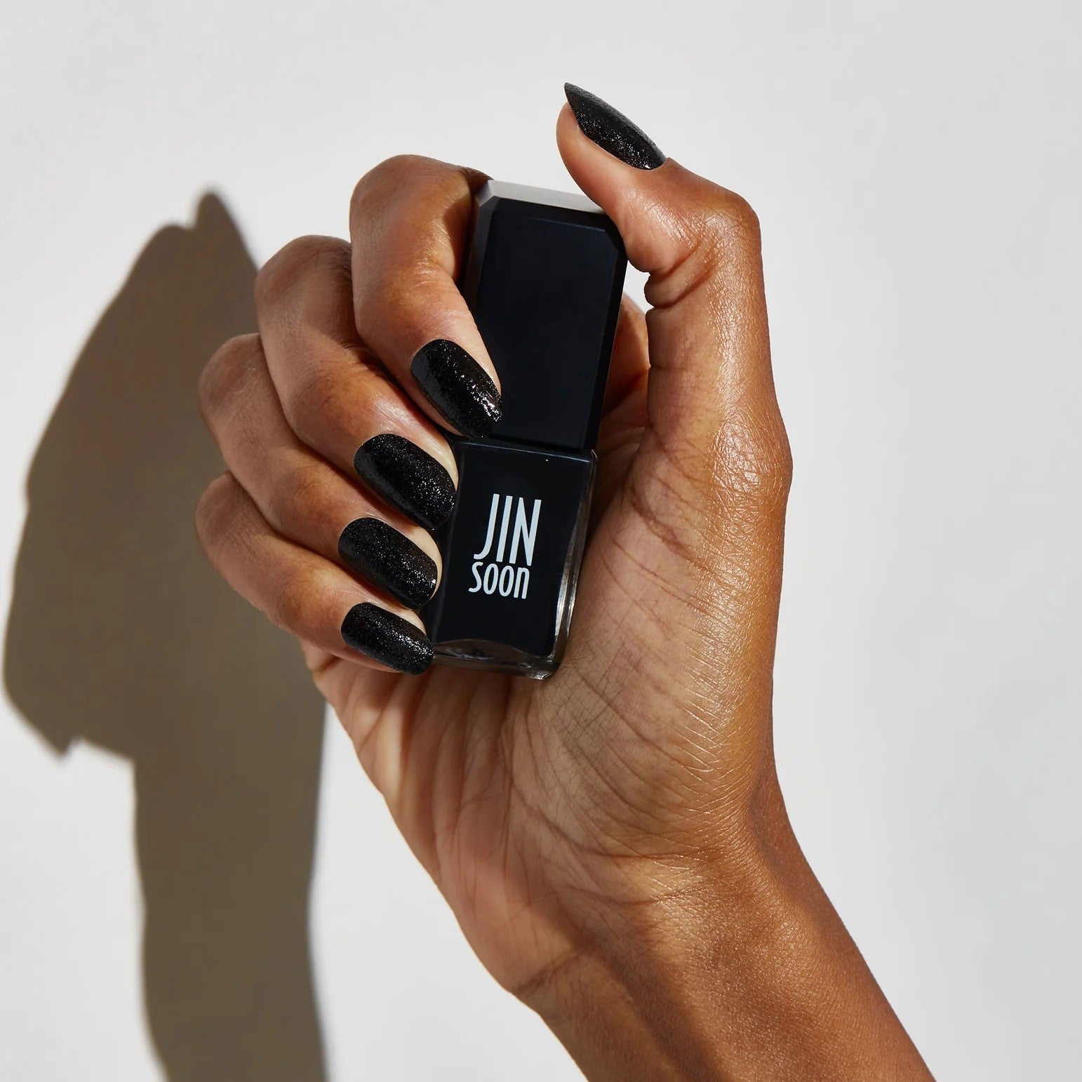 With a textured finish in black, this is JINsoon's favorite MANicure color. It's grunge and cool and no top coat is needed!
