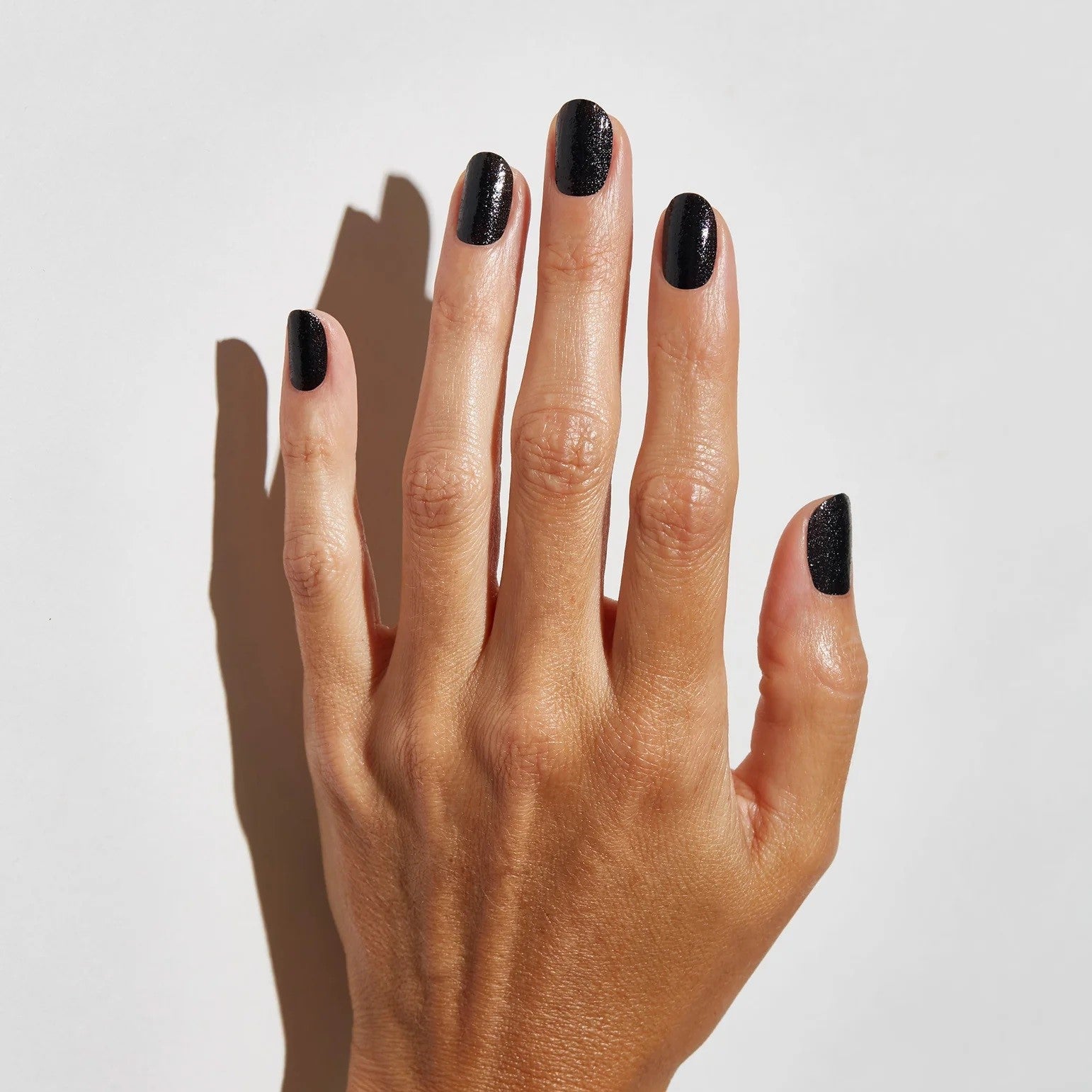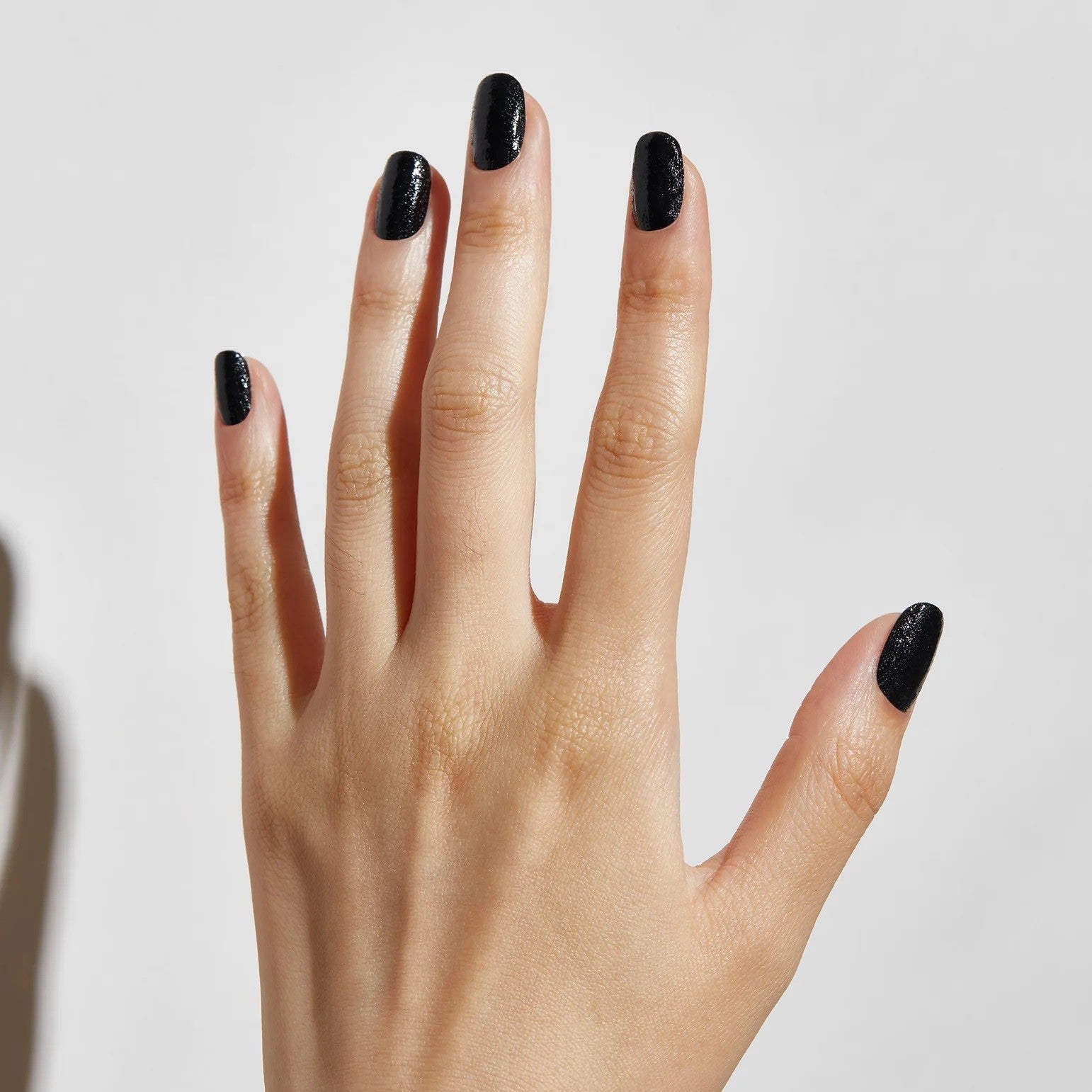 A black polish with a textured finish inspired by luxurious leather.