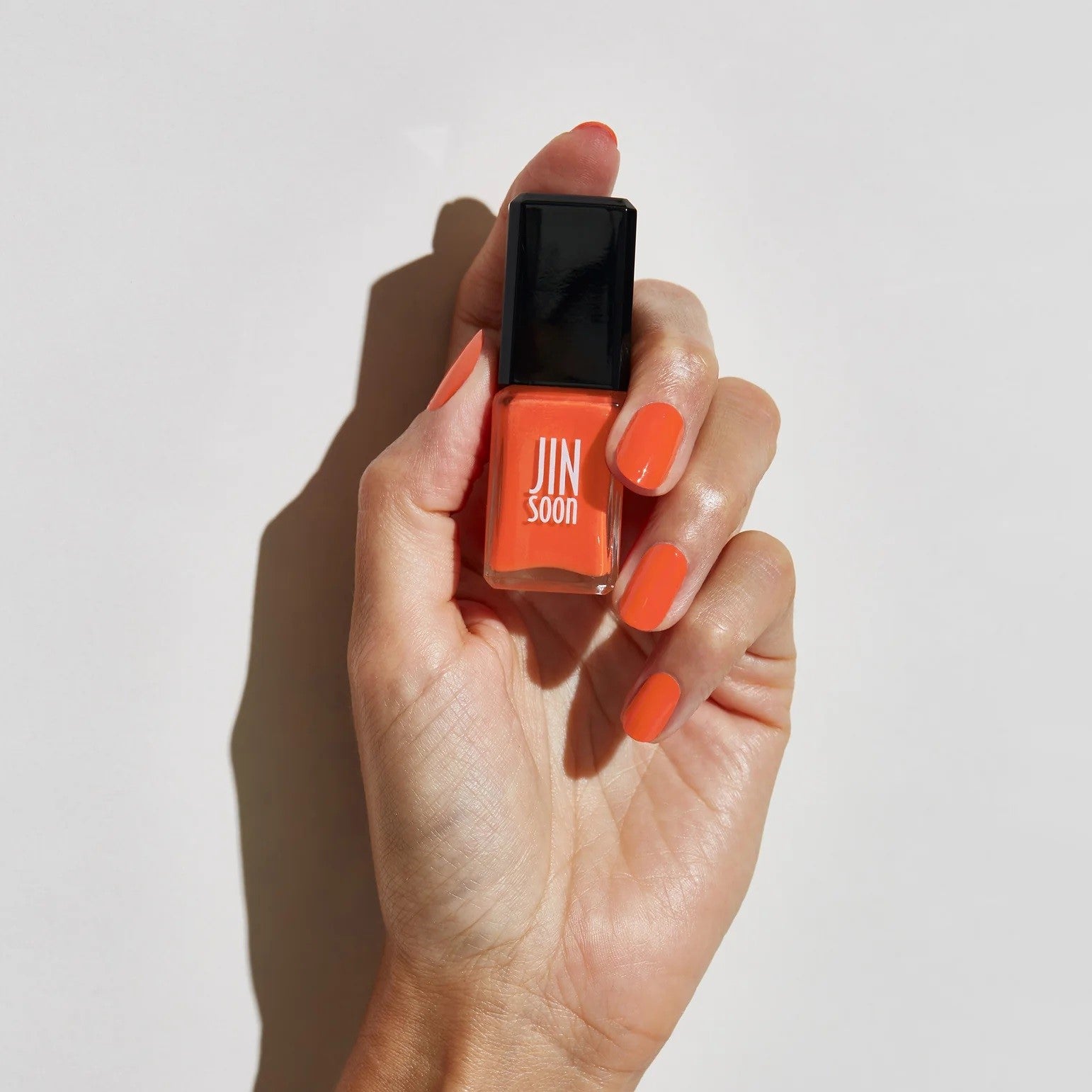 JINsoon is 21-free and formulated without harsh chemicals such as Formaldehyde, Toluene, animal derivative, Benzene, DBP, Phthalates, Cyclic Silicones, Formaldehyde Resin, Camphor, Xylene, Ethyl Tosylamide, Triphenyl Phosphate, Parabens, Hydroquinone, Bismuth Oxychloride, Synthetic fragrances, Tert-Butyl Hydroperoxide, 4-Methoxyphenol, Methyl ethyl ketone, Chromium Oxide Greens and Lead.