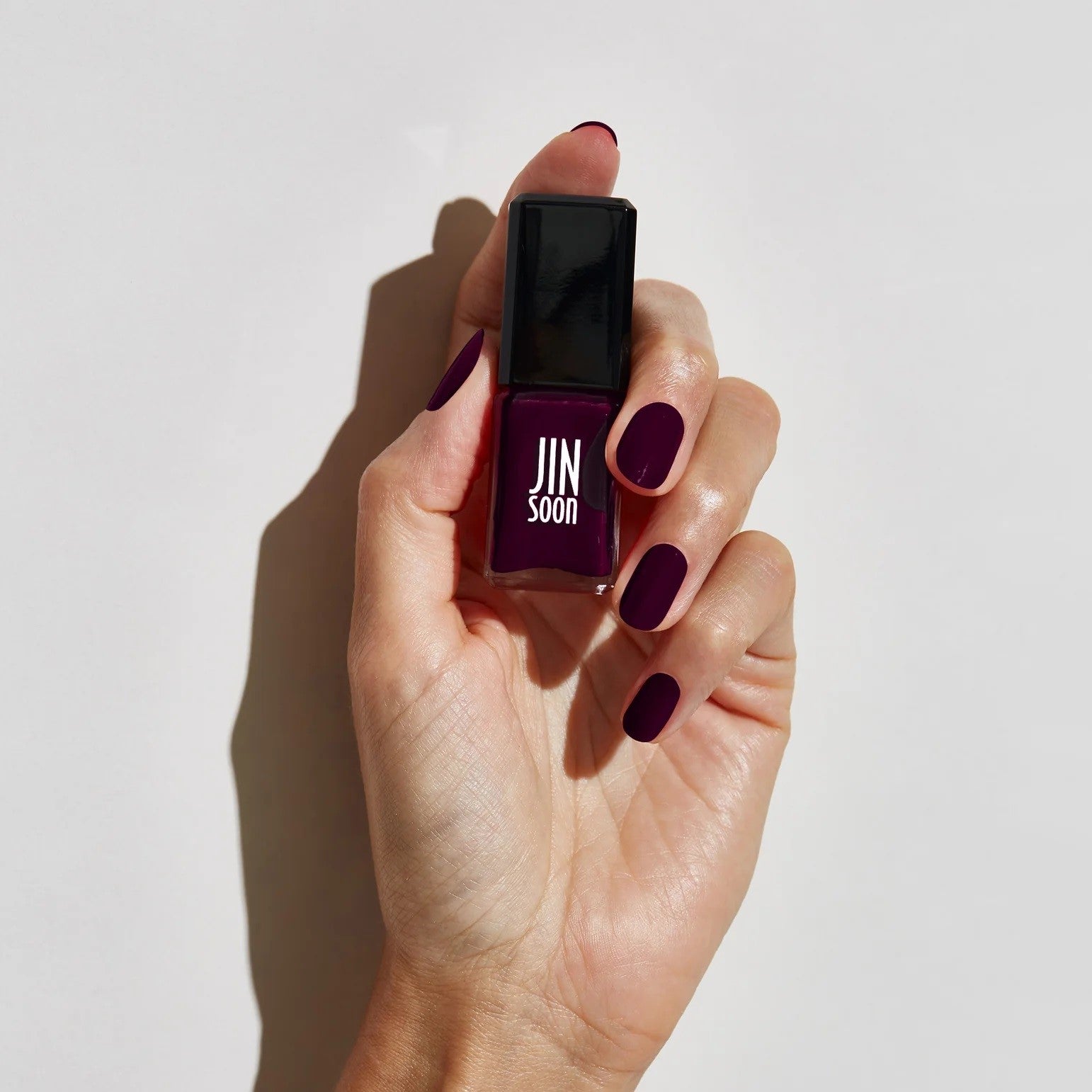 JINsoon is 21-free and formulated without harsh chemicals such as Formaldehyde, Toluene, animal derivative, Benzene, DBP, Phthalates, Cyclic Silicones, Formaldehyde Resin, Camphor, Xylene, Ethyl Tosylamide, Triphenyl Phosphate, Parabens, Hydroquinone, Bismuth Oxychloride, Synthetic fragrances, Tert-Butyl Hydroperoxide, 4-Methoxyphenol, Methyl ethyl ketone, Chromium Oxide Greens and Lead.