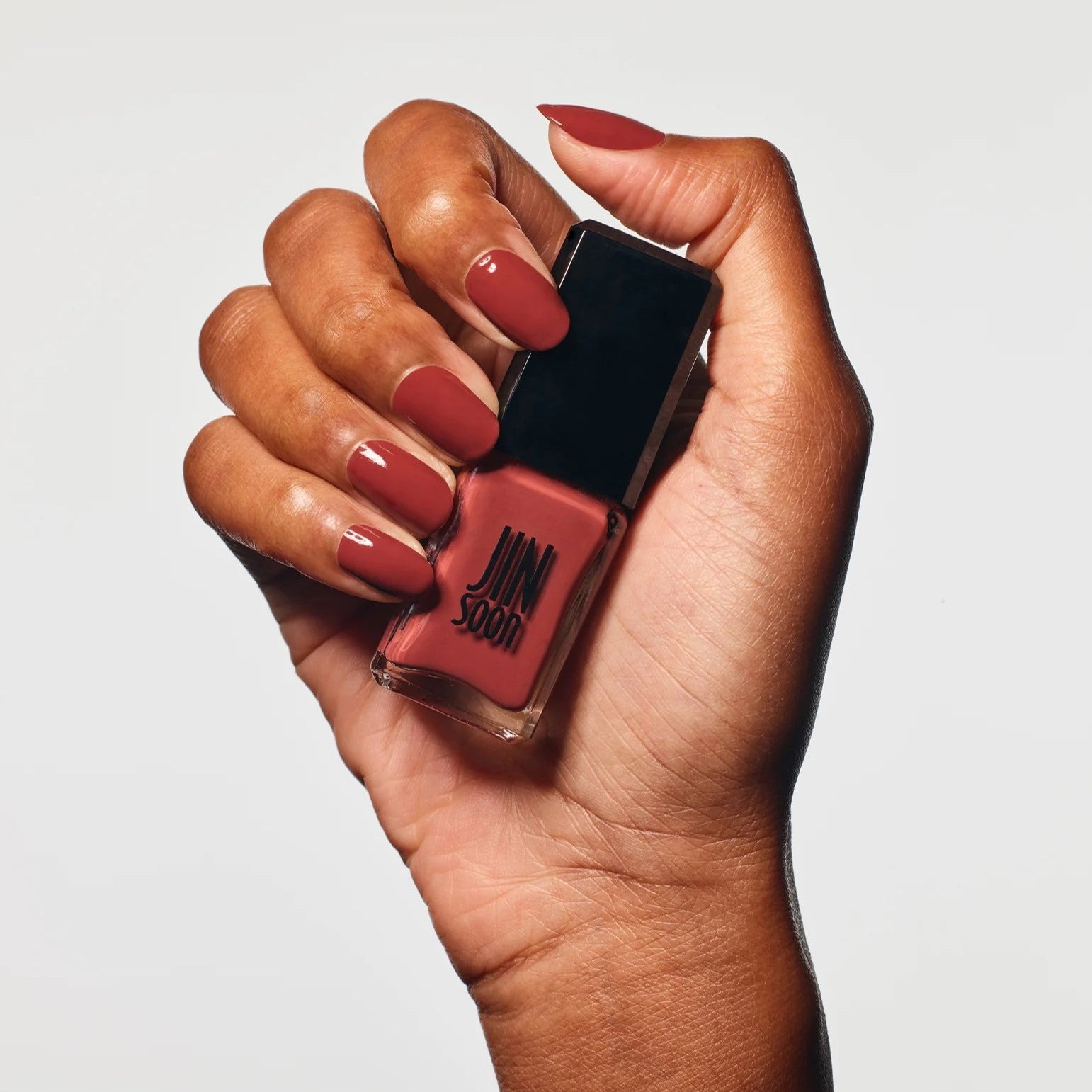 JINsoon is 21-free and formulated without harsh chemicals such as Formaldehyde, Toluene, animal derivative, Benzene, DBP, Phthalates, Cyclic Silicones, Formaldehyde Resin, Camphor, Xylene, Ethyl Tosylamide, Triphenyl Phosphate, Parabens, Hydroquinone, Bismuth Oxychloride, Synthetic fragrances, Tert-Butyl Hydroperoxide, 4-Methoxyphenol, Methyl ethyl ketone, Chromium Oxide Greens and Lead.