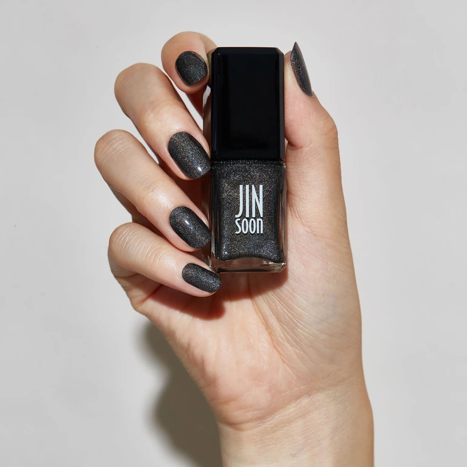 JINsoon is 21-free and formulated without harsh chemicals such as Formaldehyde, Toluene, animal derivative, Benzene, DBP, Phthalates, Cyclic Silicones, Formaldehyde Resin, Camphor, Xylene, Ethyl Tosylamide, Triphenyl Phosphate, Parabens, Hydroquinone, Bismuth Oxychloride, Synthetic fragrances, Tert-Butyl Hydroperoxide, 4-Methoxyphenol, Methyl ethyl ketone, Chromium Oxide Greens and Lead.