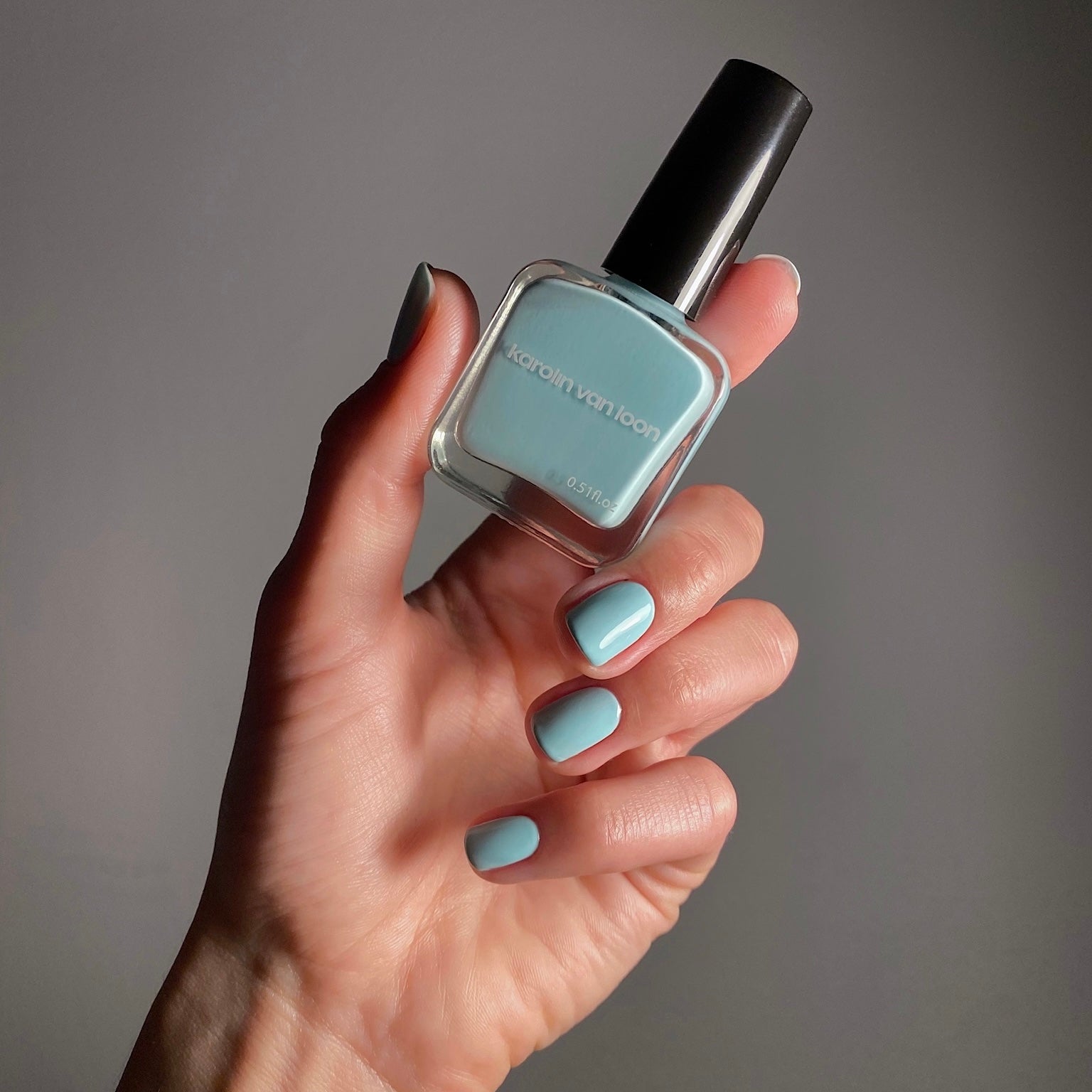 • Karolin Van Loon 51 Brume Océane misty blue vegan nail polish.