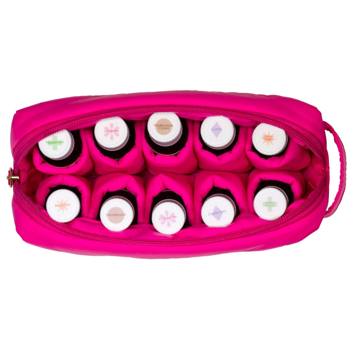 This mini-me of Living Libations dapper Dopp Bag is made of pillow-soft, water-resistant nylon and opens wide with a zippered top that makes it super spacious. It neatly nestles and organizes ten bottles in protective padded slots with room for more! At last, a perfectly pocketed, and protected way to carry and organize essential oil collections for home and away.