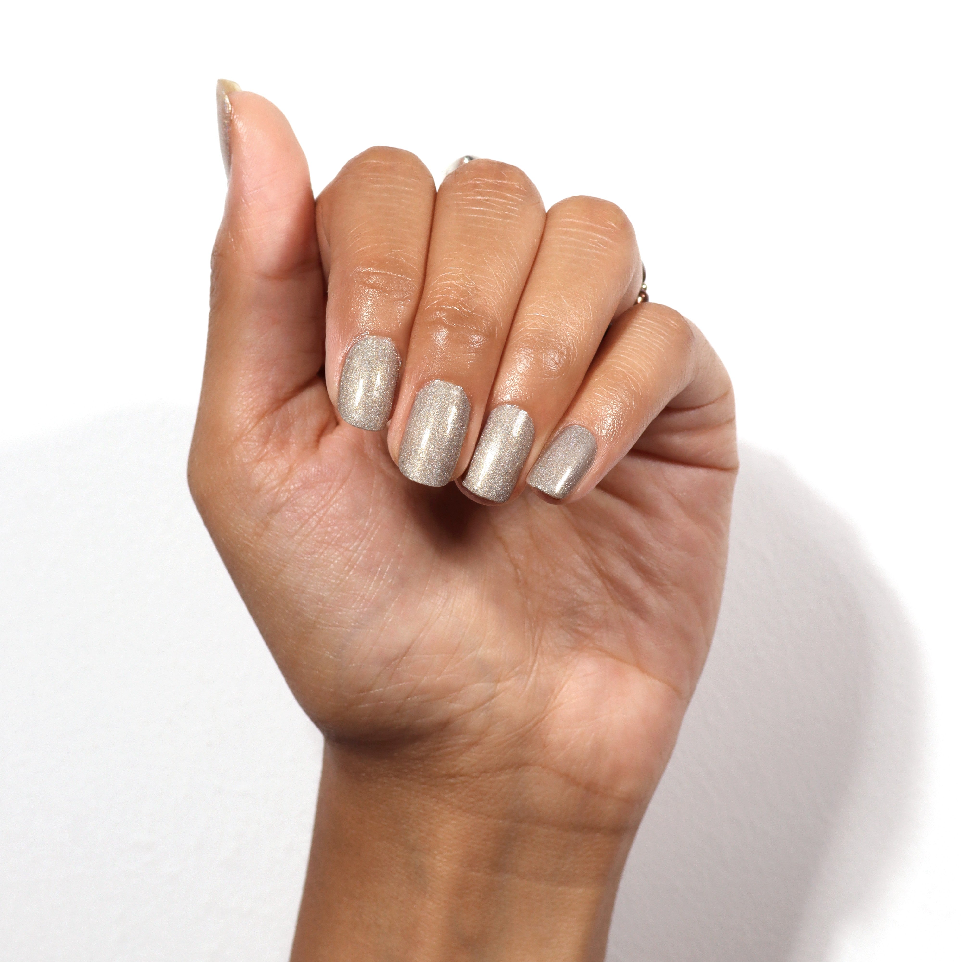 Butyl Acetate, Ethyl Acetate, Nitrocellulose, Adipic Acid/Neopentyl Glycol/Trimellitic Anhydride Copolymer, Acetyl Tributyl Citrate, Isopropyl Alcohol, Stearalkonium Bentonite, Brassica Campestris (Rapeseed) Seed Oil, Allium Sativum (Garlic) Bulb Extract, Oenothera Biennis (Evening Primrose) Oil, Chamomilla Recutita (Matricaria) Flower Extract, Cucumis Sativus (Cucumber) Fruit Extract, Tocopheryl Acetate (Vitamin E), Acrylates Copolymer, Synthetic Fluorphlogopite, N-butyl Alcohol, Biotin, Silica, Etocrylene, Aqua (Water), Calcium Pantothenate, Diacetone Alcohol, Acetone, Phosphoric Acid, Alcohol Denat., Glycerin, Propylene Glycol, Ferrous Gluconate, Phenoxyethanol, Tin Oxide, CI 77891, CI 77491, CI 77000, CI 19140, CI 15850, CI 77499, CI 77510
