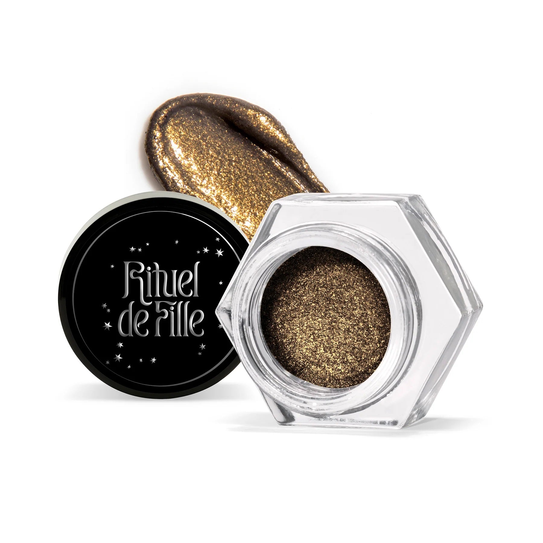 • RITUEL DE FILLE Celestial Sphere Gelée Eye Gloss – Serpens, smoky gold with iridescent shimmer, suitable for eyes, lips, and cheeks.