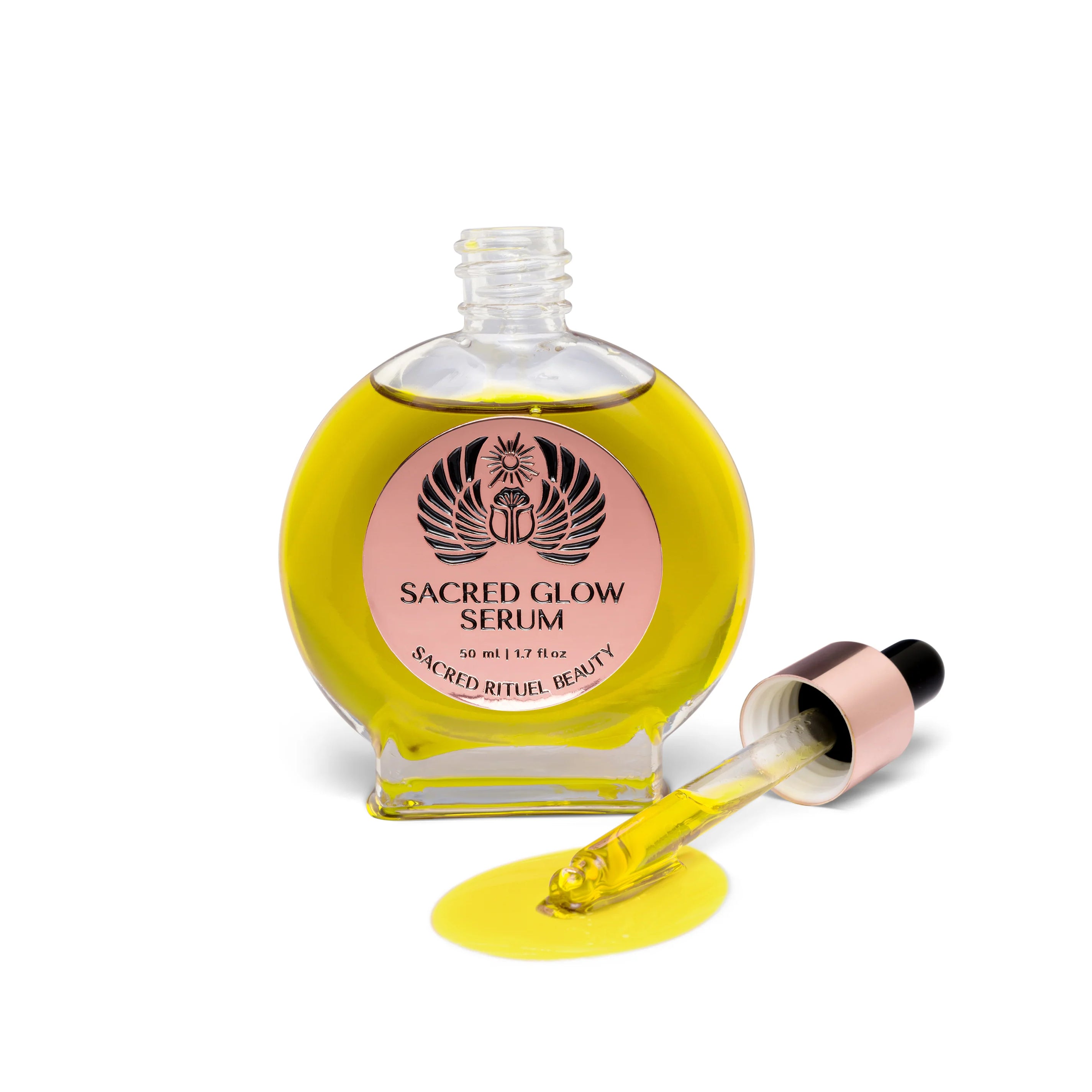 Sacred Glow Serum is made without added fillers, synthetic fragrances, or synthetic preservatives. The formula is designed to be gentle and suitable for sensitive-looking skin.