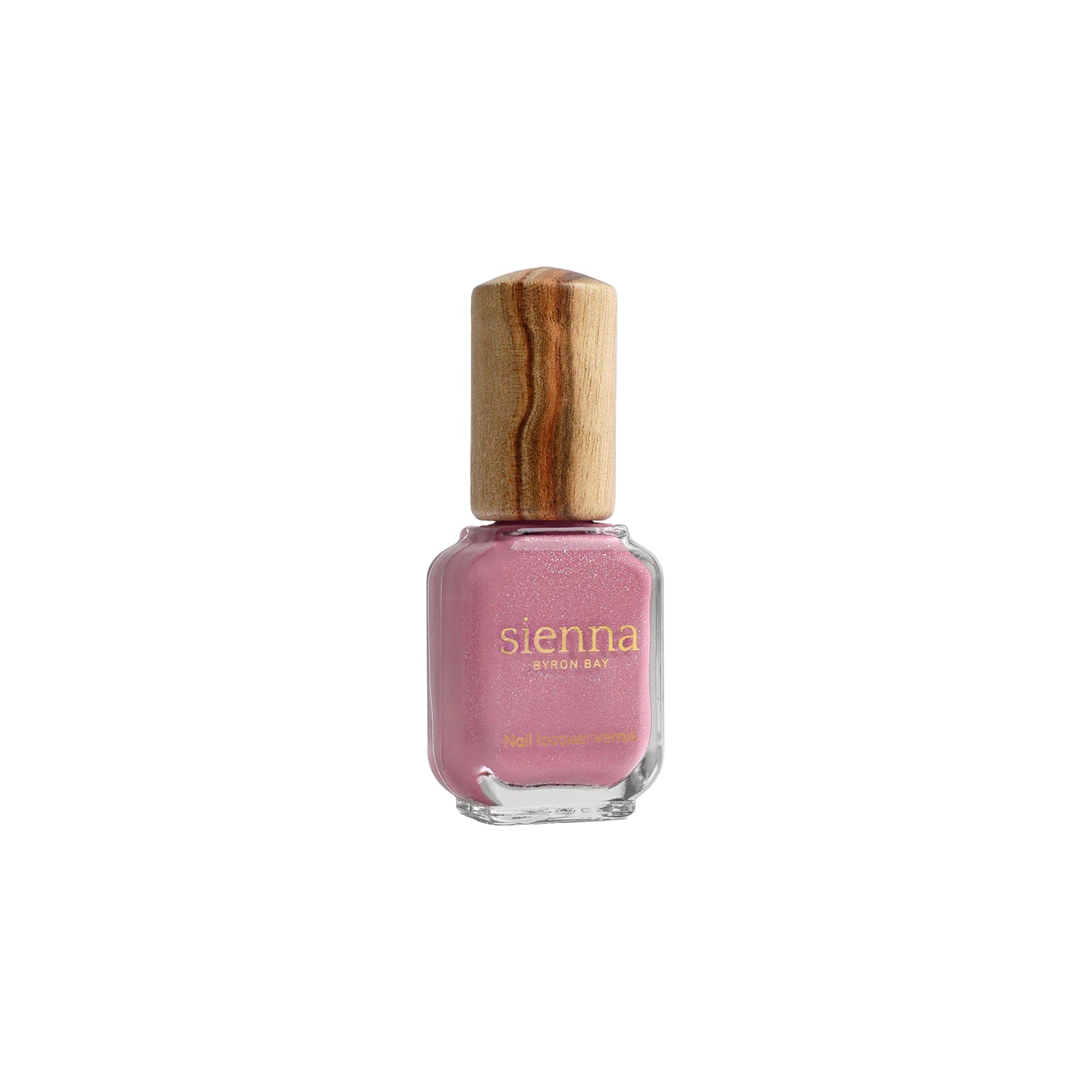 • Sienna Byron Bay Resonance Nail Polish - midtone lilac creme with holographic shimmer in an eco-friendly bottle.