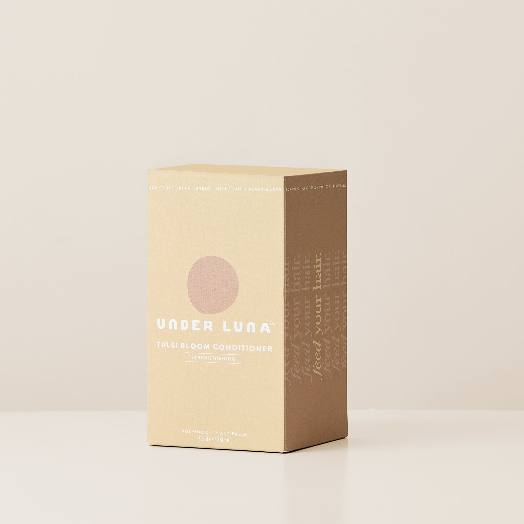 • Under Luna Tulsi Bloom Conditioner in recyclable aluminum bottle, enriched with tulsi, nettle, rosemary, and sweet orange for fine to medium hair.